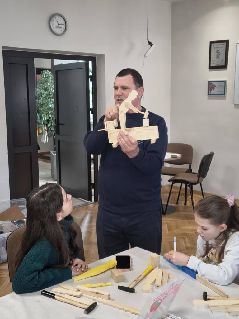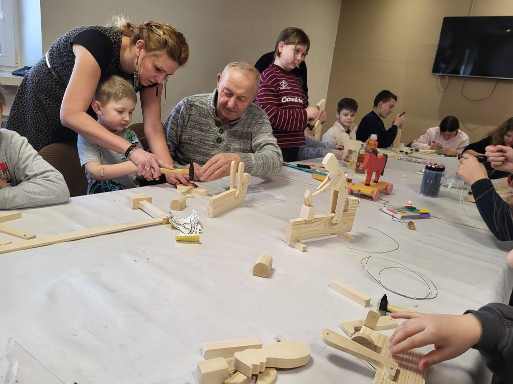 Warsztaty zabawkarskie na Dzień Dziadka z rzeźbiarzem Markiem Szyszko.