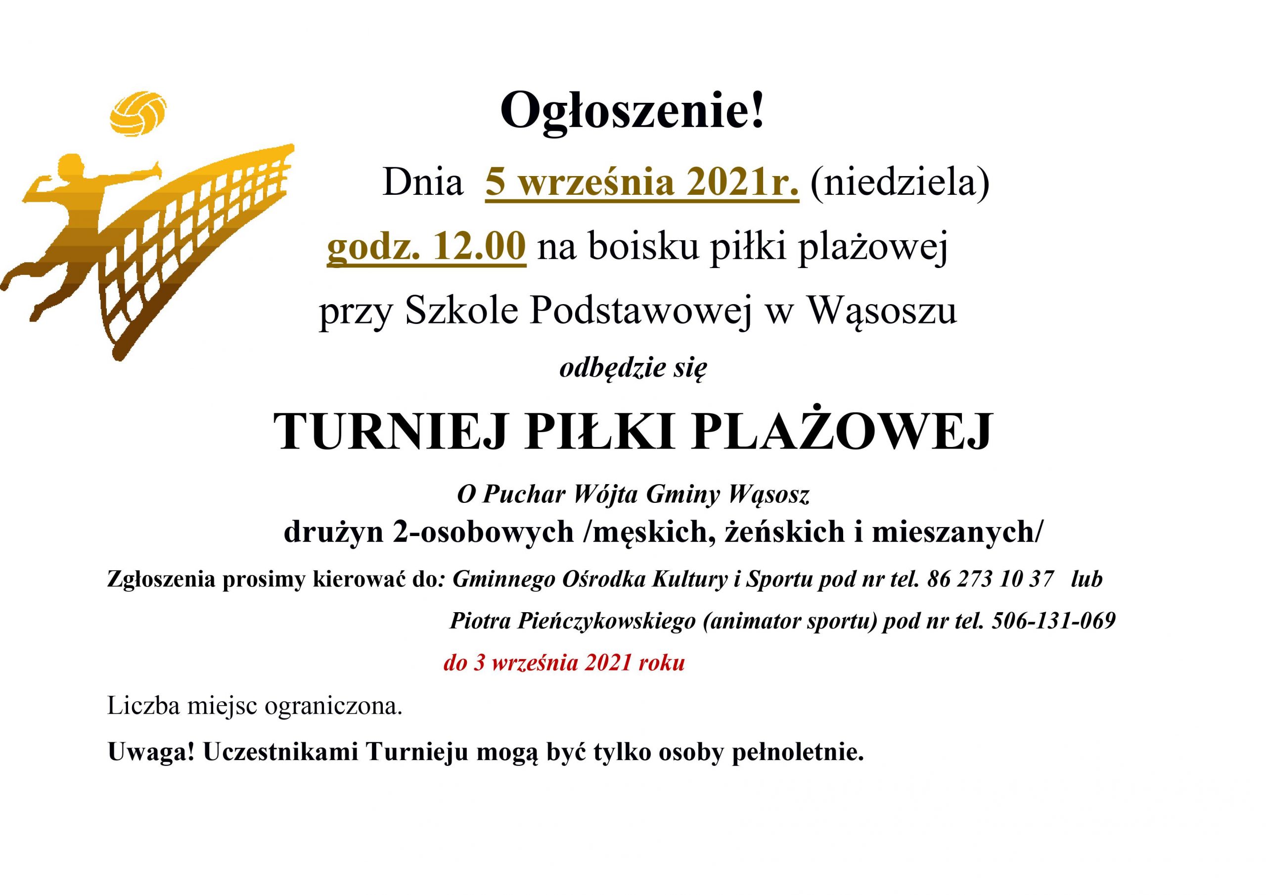 Dnia 15 sierpnia 2021r. w godzinach 12.00-18.00 odbył się w Wąsoszu Piknik Rodzinny oraz XVI Turniej Piłki Nożnej o Puchar wójta Gminy Wąsosz.