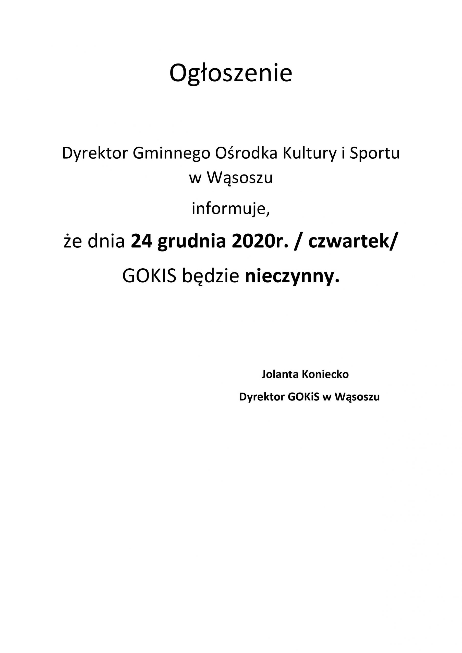 dyrektor GOKiS w Wąsoszu