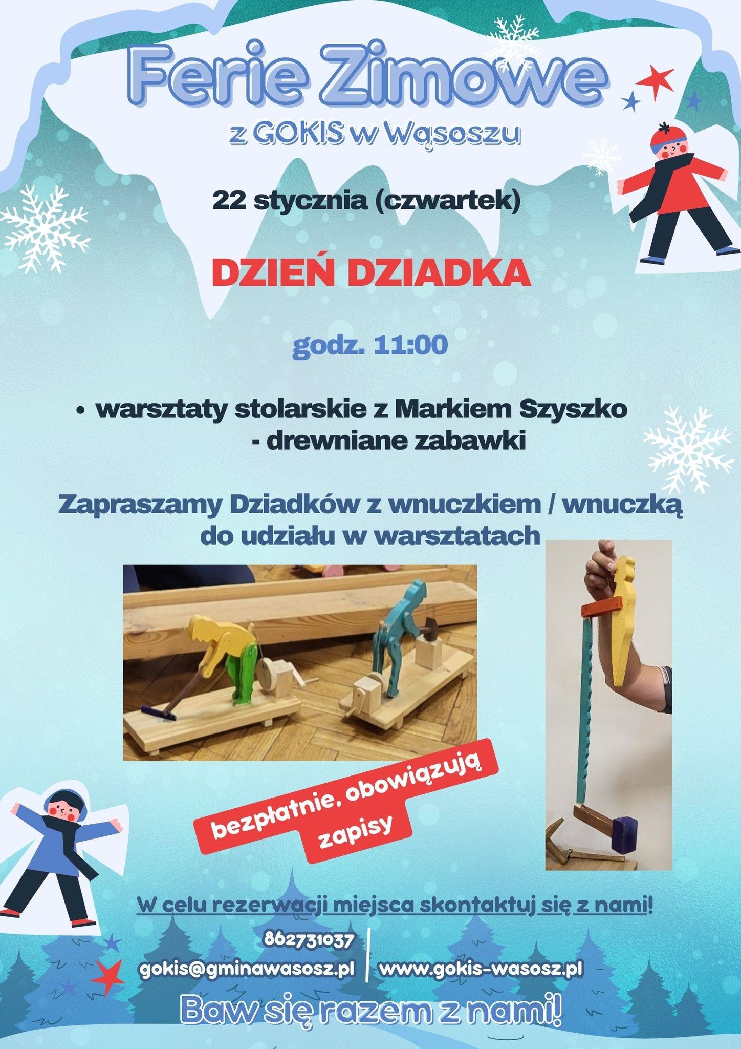 Warsztaty zabawkarskie na Dzień Dziadka z rzeźbiarzem Markiem Szyszko.
